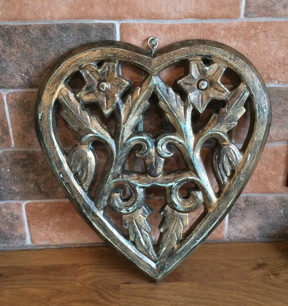 Hanging Wood Heart Wall Decor Carved Painted Heart Etsy