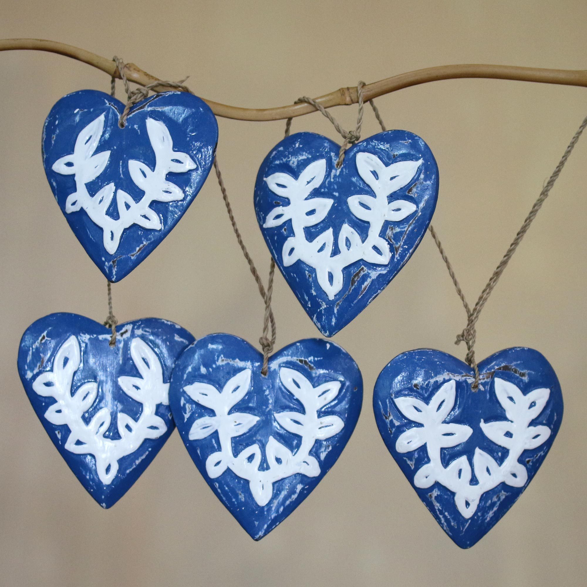 Handcrafted Blue And White Wood Heart Wall Decor Accessory Blue