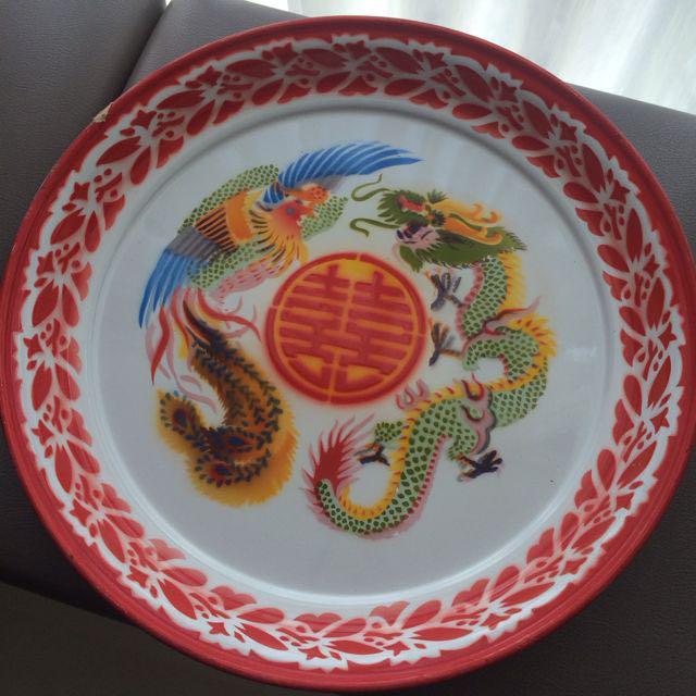 45cm Dragon And Phoenix 双喜 Round Enamel Tray Home Decor Interior