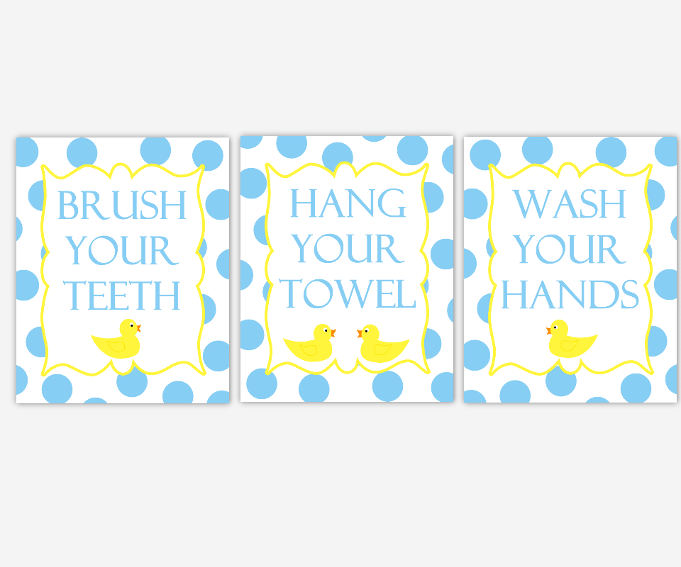 Rubber Duck Kids Bathroom Wall Art Rubber Ducky Yellow Blue Brush