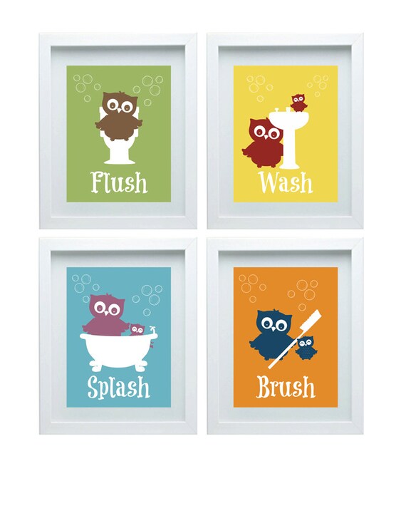 Bathroom Rules Art Kids Bathroom Decor Owl Wall Decor Set Of Etsy