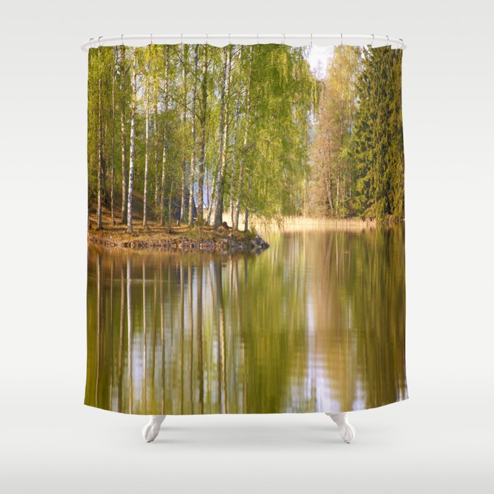 It S Almost Summer Reflection Tree Lake Decor Society6 Shower