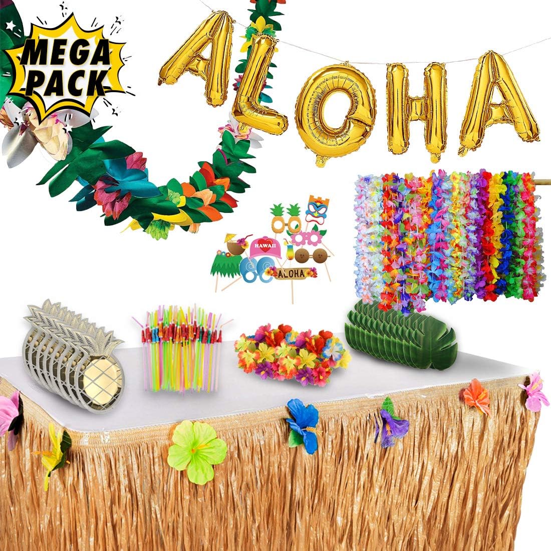Luau Party Supplies Hawaiian Decorations Set 96pcs Aloha Banner