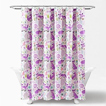 Lush Decor Pixie Fox Shower Curtain Fabric Floral Animal Print