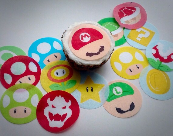 12 Super Mario Edible Paper Cake Cupcake Cookie Toppers Etsy