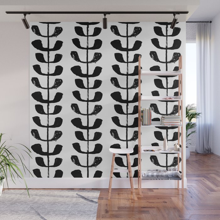 Linocut Black And White Botanical Pattern Minimalist Home Decor