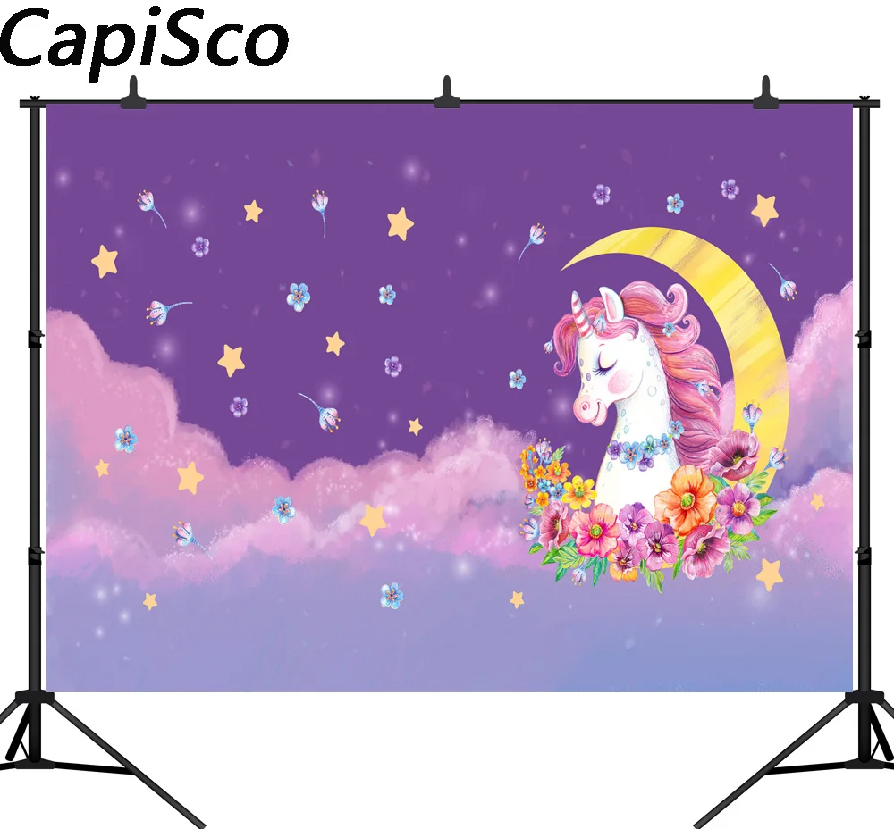 Capisco Photography Backdrop Unicorn Party Star Moon Decor