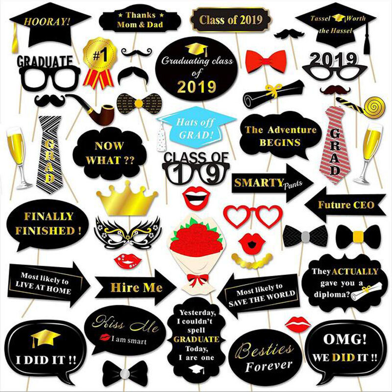 50pcs Graduation Photo Booth Props Masks Party 2019 Grad Mustache
