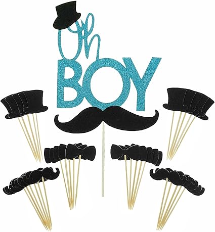 Amazon Com Shxstore Oh Boy Cake Topper Mustache Hat Bowtie