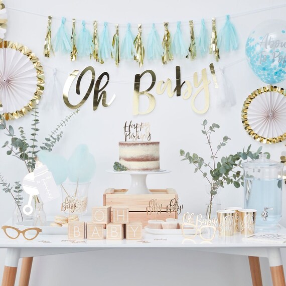 Gold Baby Shower Bunting Neutral Baby Shower Decorations Etsy