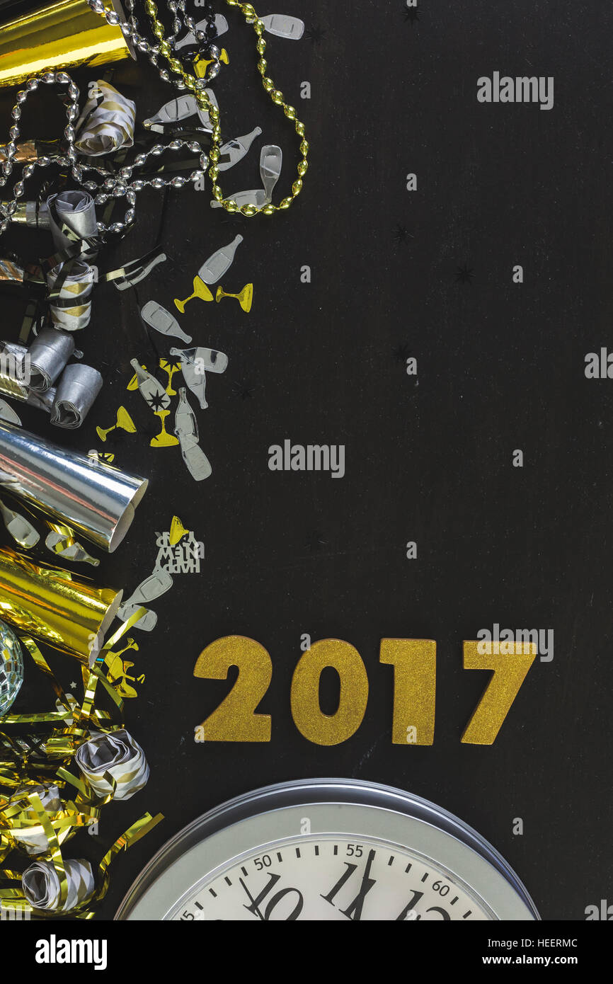 New Years Eve Party Decorations Around Blank Note Stock Photo