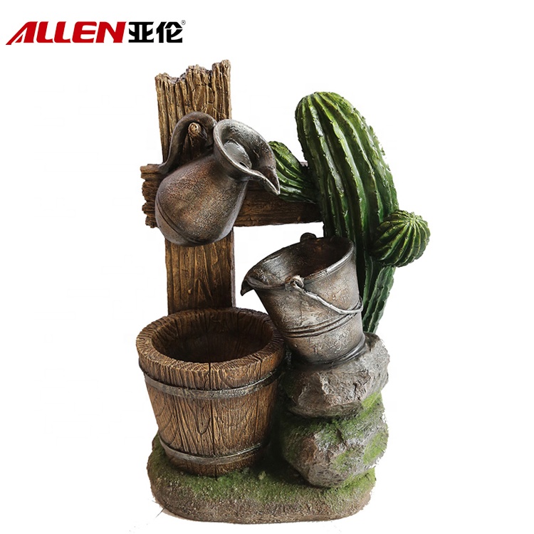 China Fiberglass Tropical Barrel Water Fountain Customized
