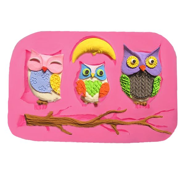 Owls Moon Branch Shape Silicone Fondant Cake Mold Cupcake