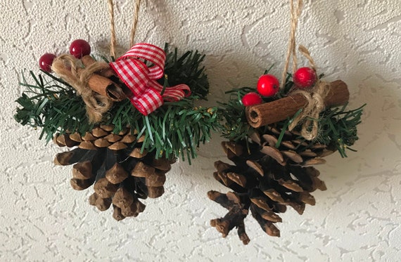 Set Of 2 Pine Cone Christmas Ornaments For Country Home Rustic Etsy