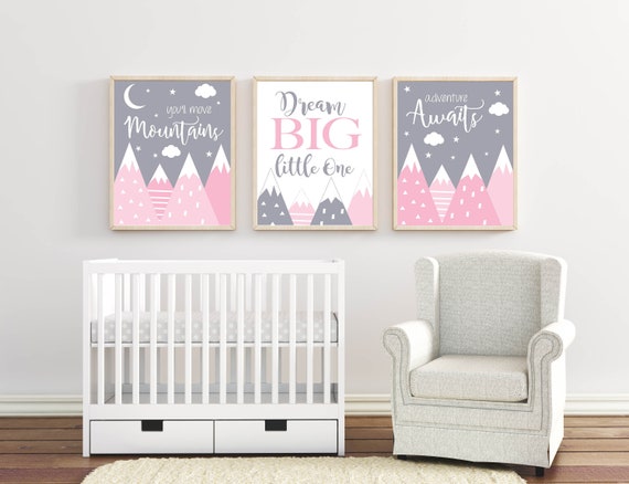 Mountain Nursery Wall Art Pink Gray Nursery Decor Girl Etsy