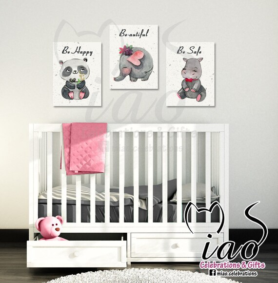 Pink Gray Nursery Decor Baby Girl Nursery Wall Decor Elephant Etsy