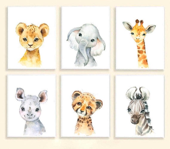 Safari Nursery Art Animal Nursery Decor Watercolor Baby Animals