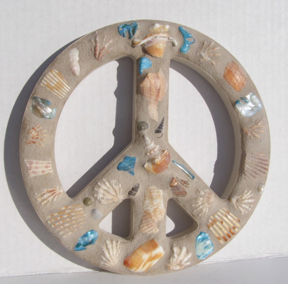 Mosaic Peace Sign Wall Art Seashell Wall Hanging Coastal Etsy