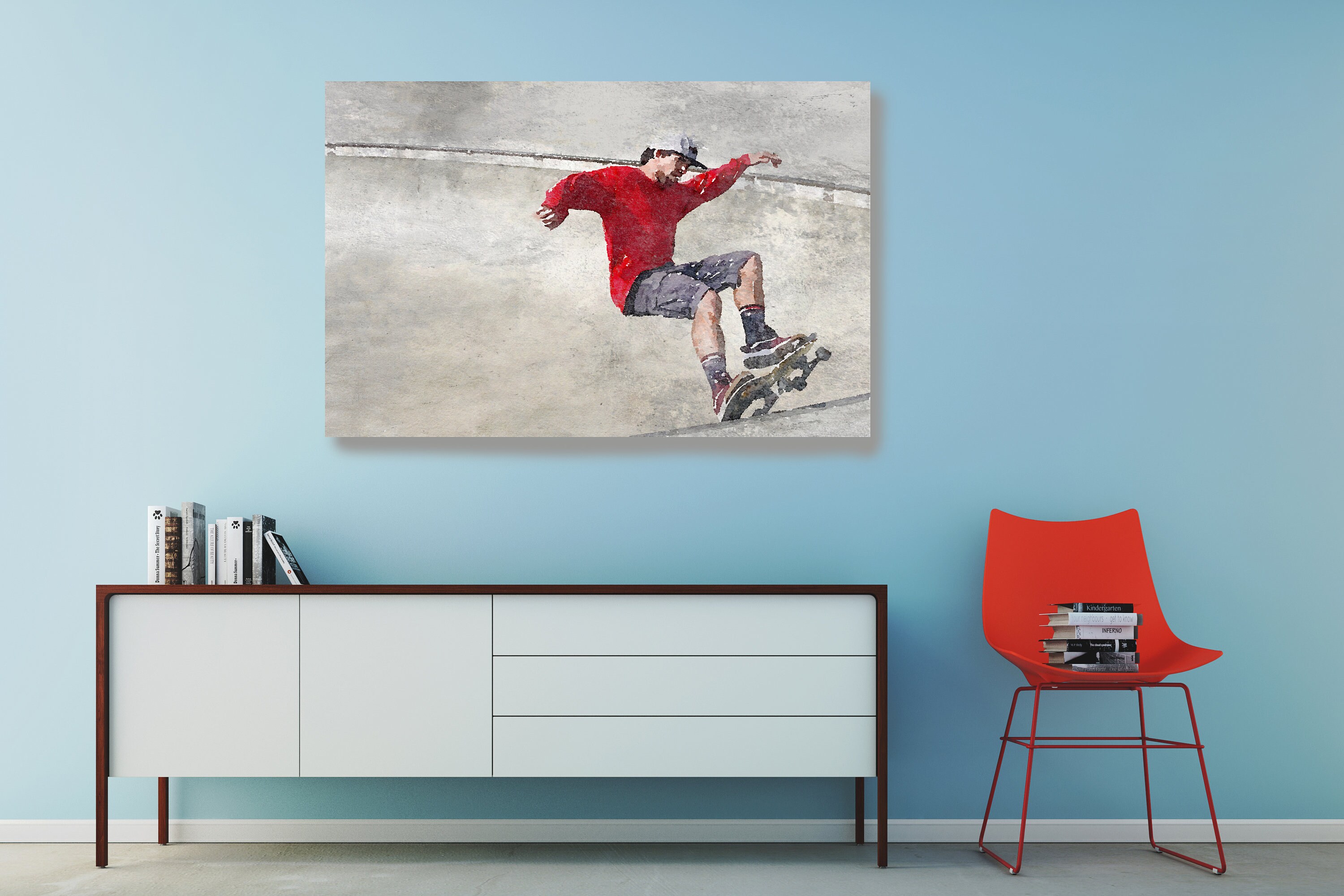 Skateboarder Skateboard Watercolor Wall Art Watercolor