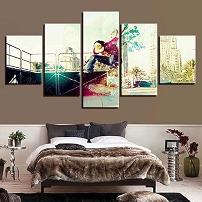 Amazon Com Wangjru 5piece Canvas Print Skateboard Canvas