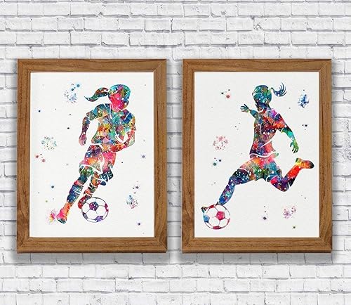 Amazon Com Soccer Player Girl Watercolor Print Set Sports Wall