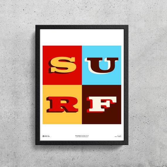 Surf Typographic Premium Art Print Surf Art Surf Decor Etsy