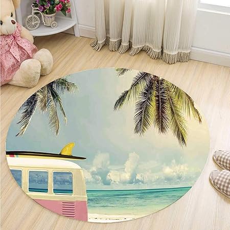 Amazon Com Moocom Surf Decor Non Slip Round Mat Minivan On The