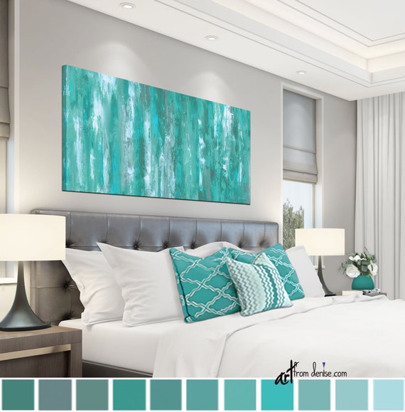 Gray Green Teal Wall Art Canvas Abstract Bedroom Wall Decor Etsy