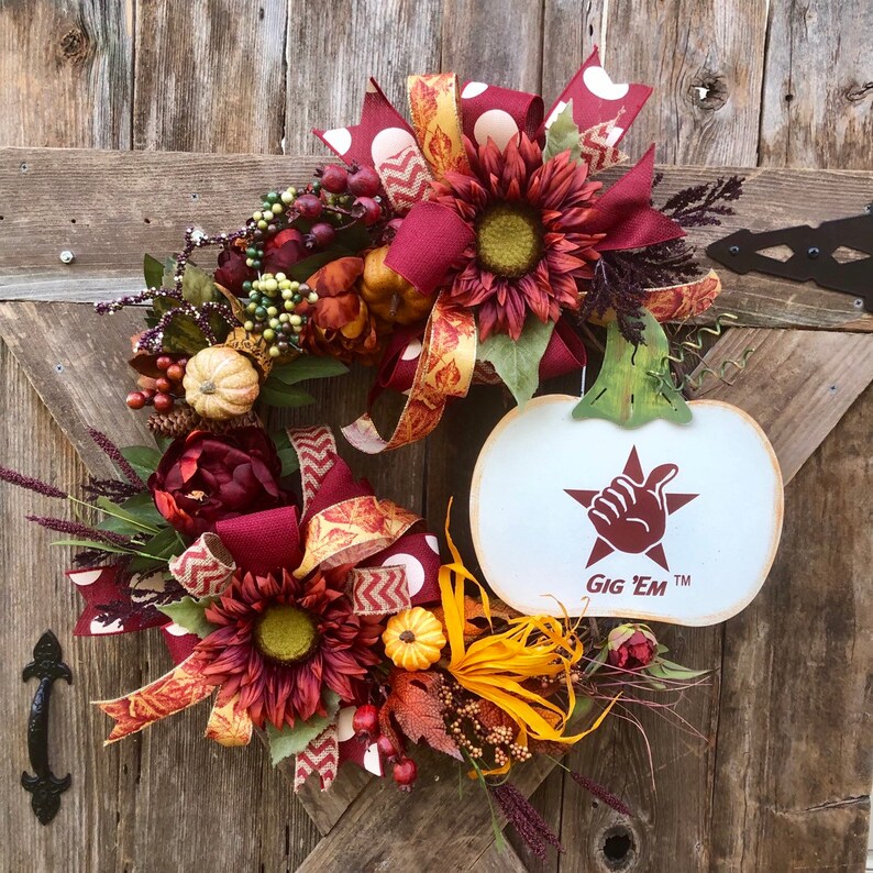 Texas Aggies Pumpkin Fall Wreath Aggie Decor Tamu Wreath Etsy