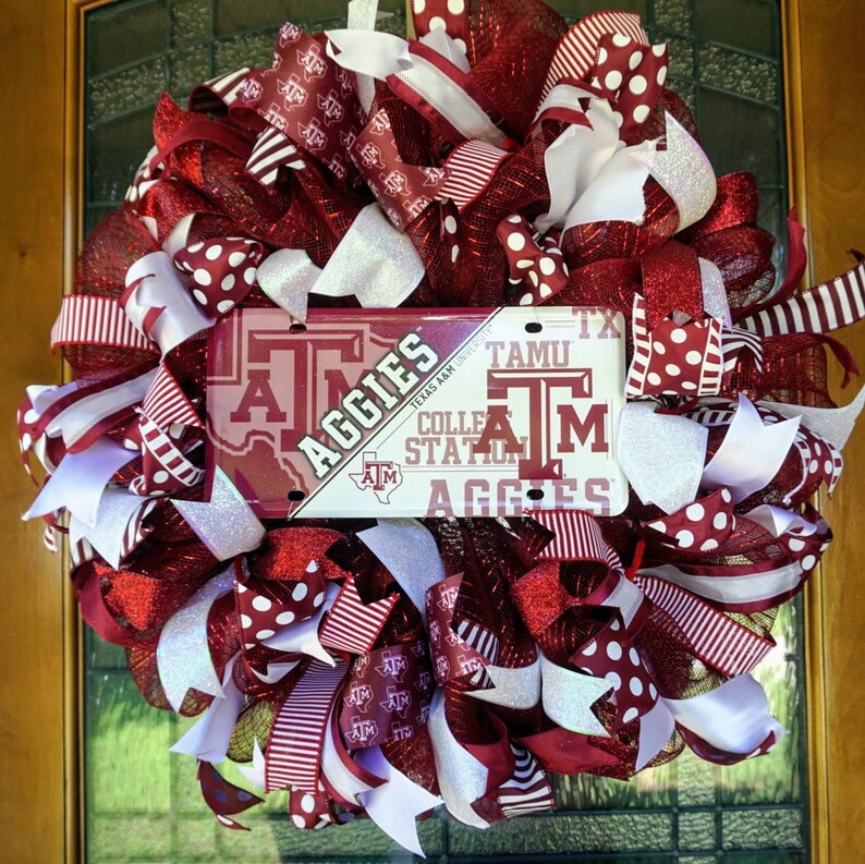 Texas Aggies Wreath Aggie Decor Tamu Wreath Texas A M Etsy