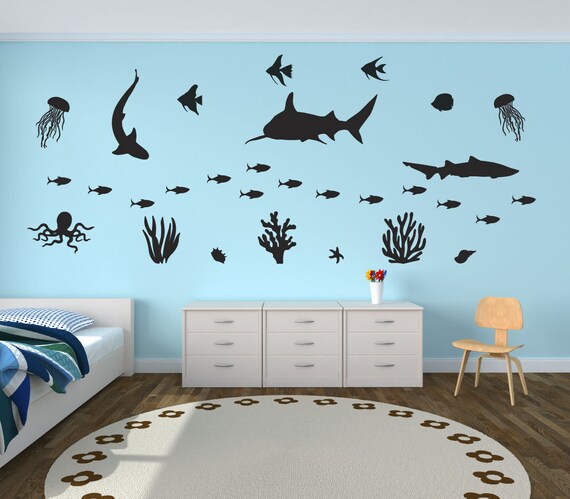 Under The Sea Room Decal Shark Decor Shark Decal Shark Etsy