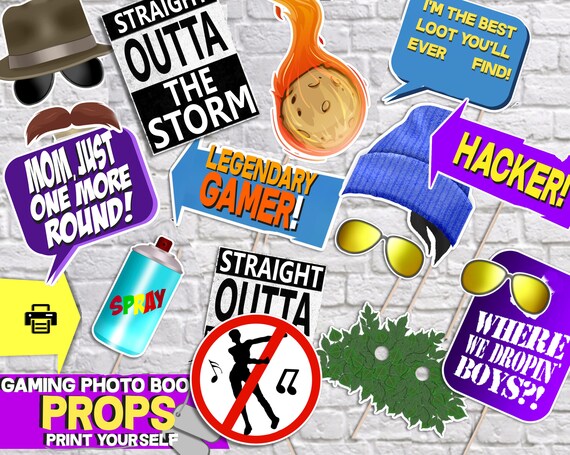 17 File Gaming Photo Booth Props Video Game Birthday Photo Etsy