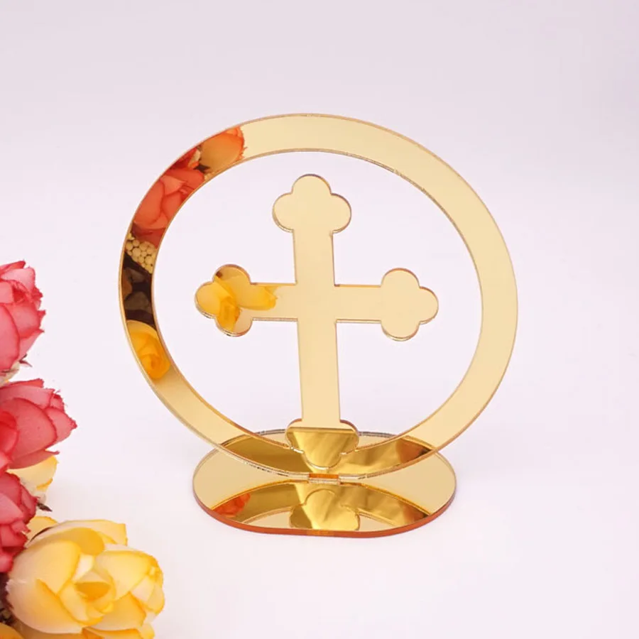20pcs Acrylic Mirror Circle Cross Table Standing Home Decor 10cm