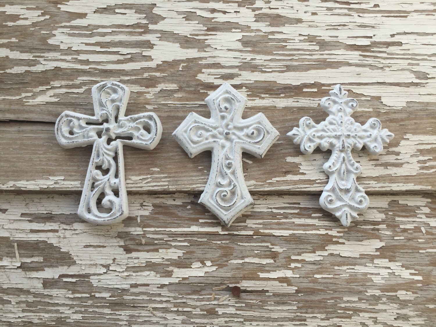 Set Of 3 Small White Cast Iron Wall Decor Crosses Etsy