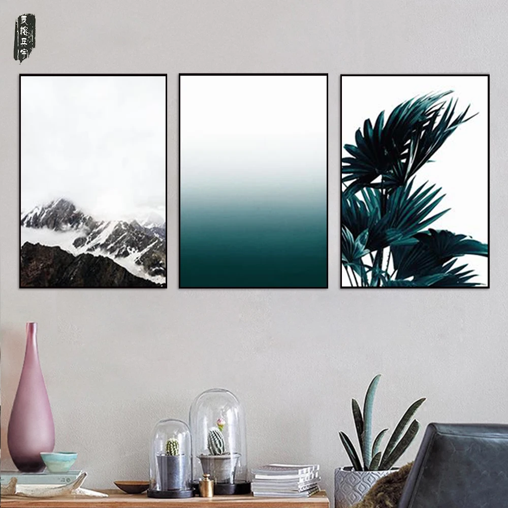 Grey Navy Blue And Mint Woodland Wall Art Room Decor Hangings For