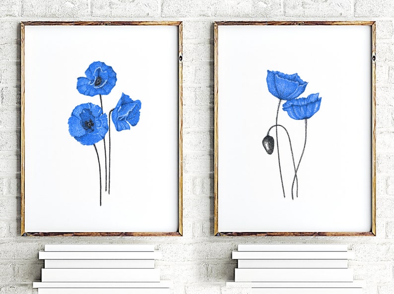 Blue Flowers Wall Art Set Of 2 Botanic Print Art Sets Floral Etsy