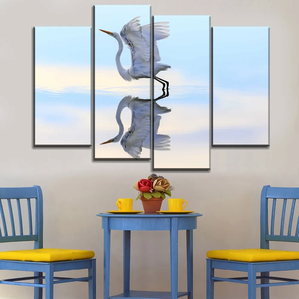 Modern Home Decor Kitchen Restaurant 4 Pcs Bird Heron Water