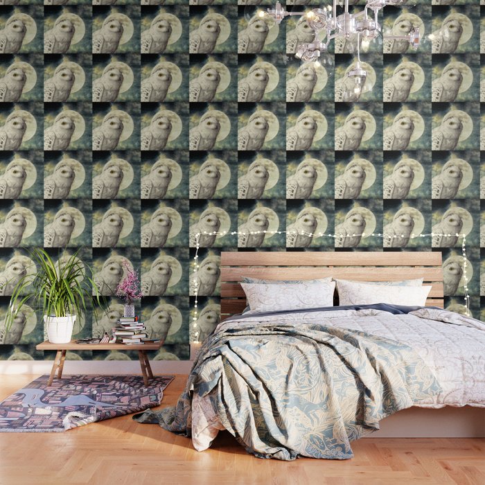 White Snowy Owl Bird Moon Blue Home Decor Wildlife Art A369