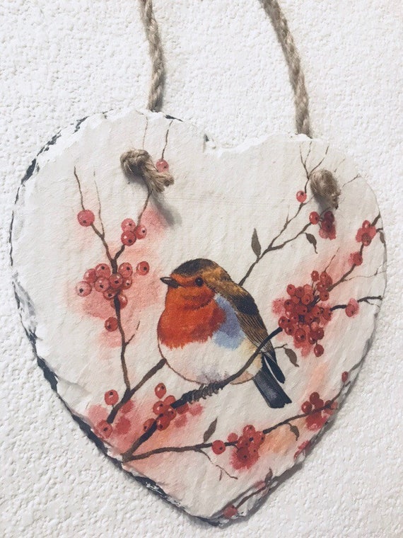 Wildlife Home Decor Robin Decor Slate Heart Birthday Gift Etsy