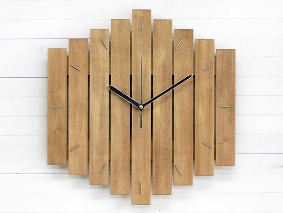 Brown Clock Industrial Kitchen Art Wall Clock Wooden Decor Etsy