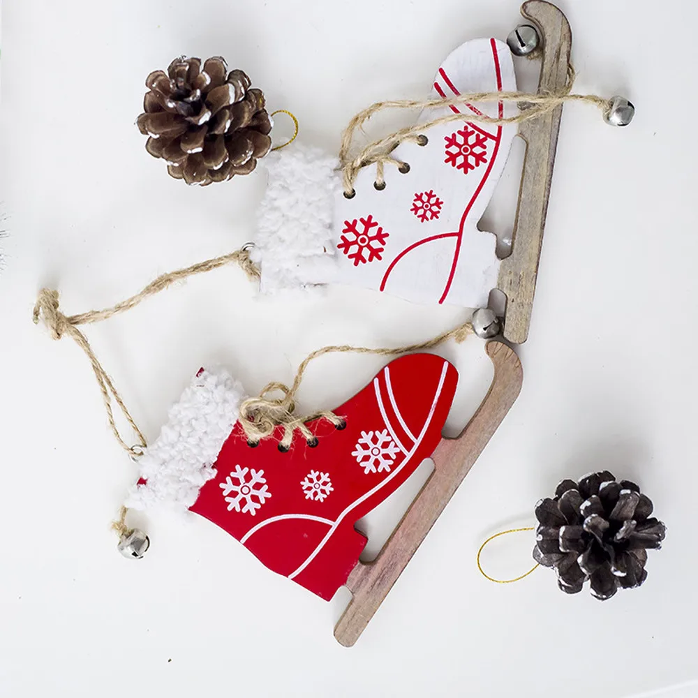 Snowflake Pattern Wooden Sleds Boots Christmas Xmas Tree Hanging