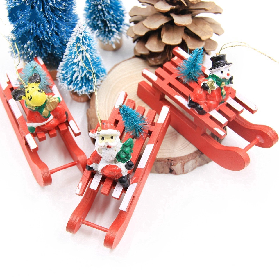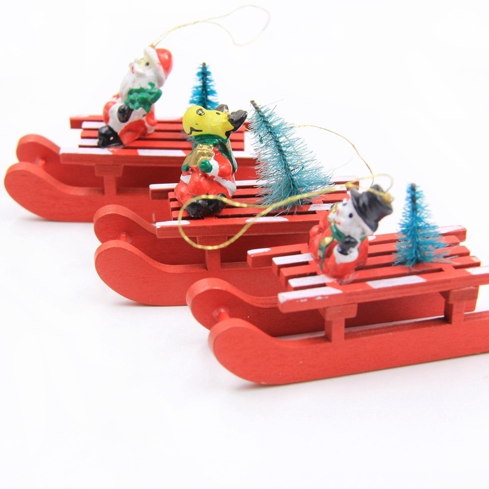 3pcs Lot Wooden Sled Diy Creative Christmas Series Pendants