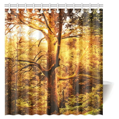Mypop Woodland Decor Shower Curtain Old Spruce Tree View Nature