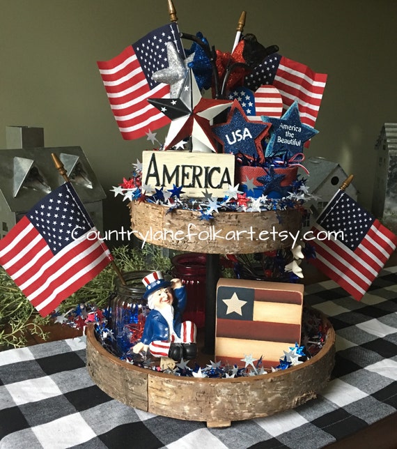 American Flag Wooden Block Tiered Tray Decor 4th Of July Etsy