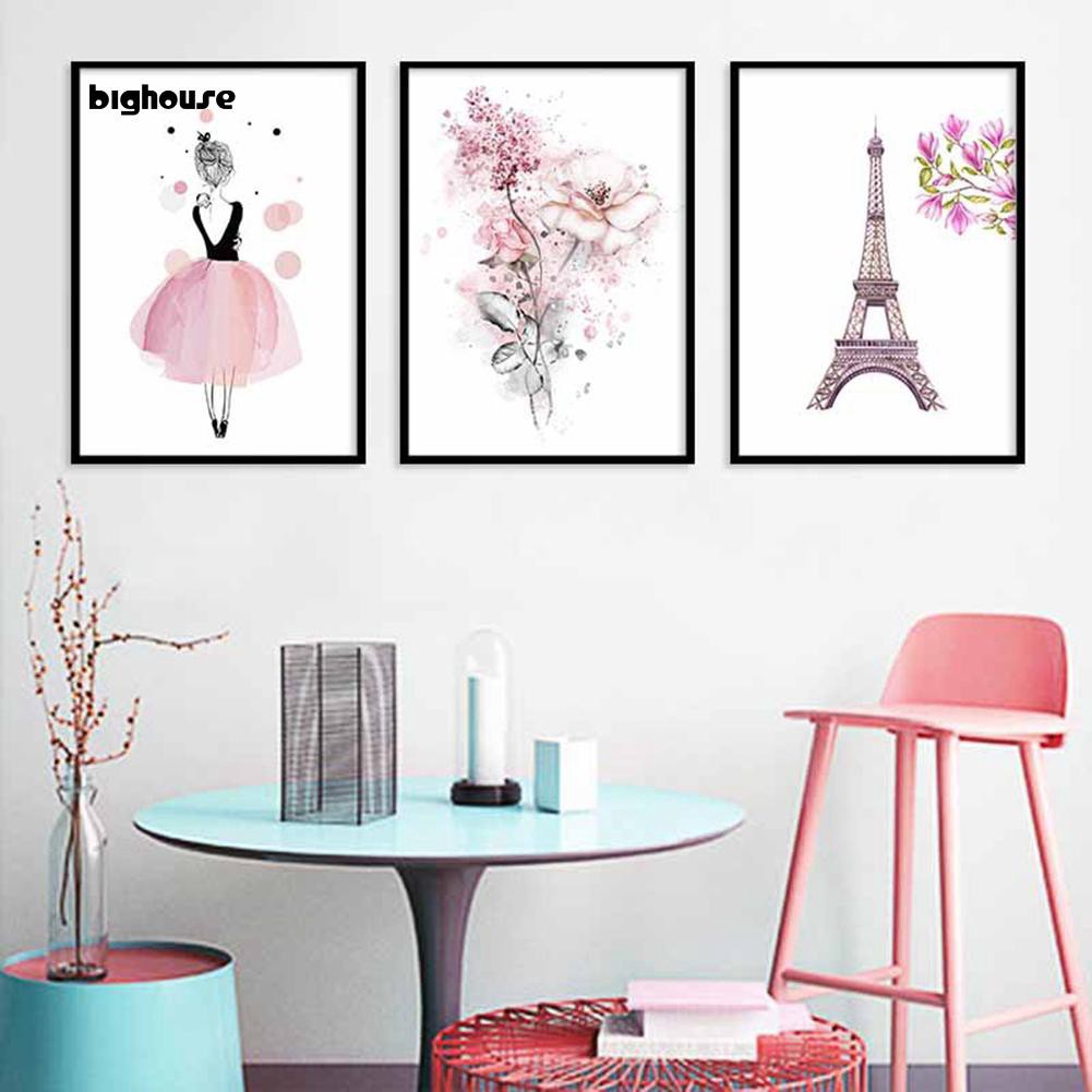 Bighouse Dancing Girl Flower Tower Canvas Poster No Frame Painting