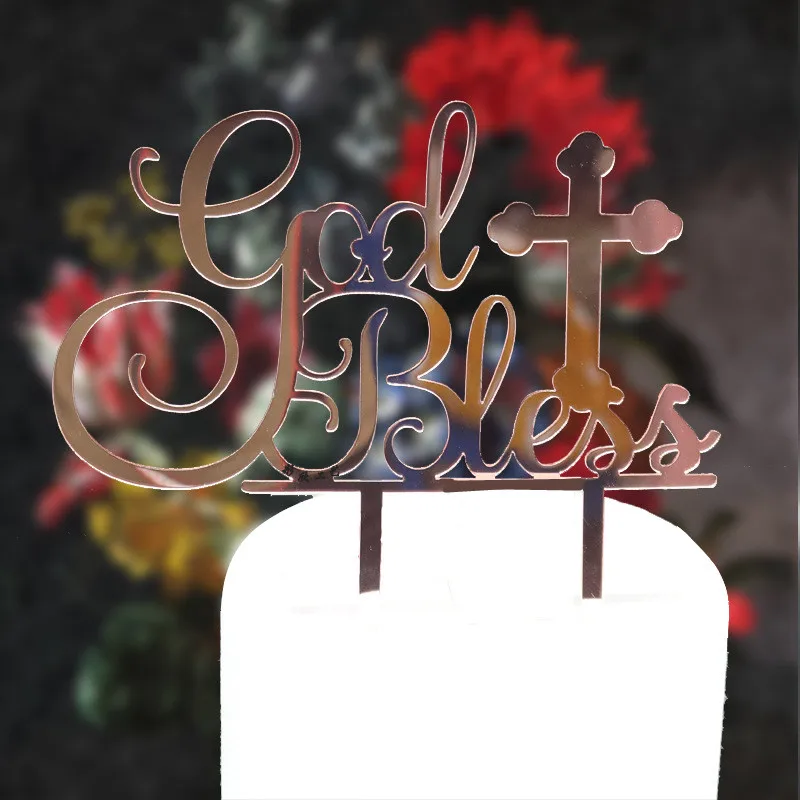 Glitter Gold Silver God Bless Cross Wedding Cake Topper