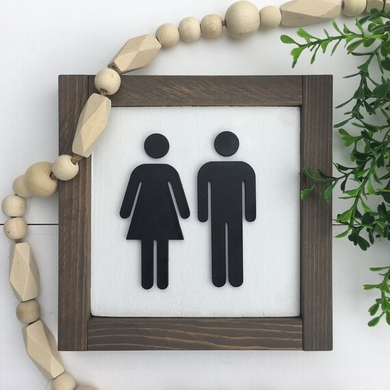 Rustic Framed Restroom Sign Farmhouse Bathroom Shelf Decor Etsy