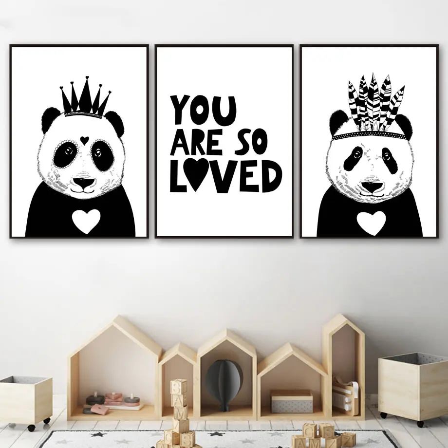 2020 Crown Panda Love Quotes Cartoon Nordic Posters And Prints