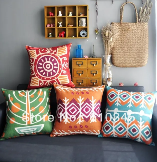 Free Shipping 45x45cm Colrful Boho Linen Cotton Pillow Cover