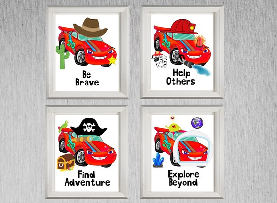 Childrens Wall Decor Set Of 4 Vehicles Wall Art Race Car Etsy